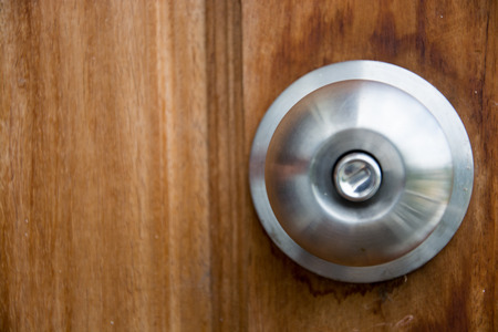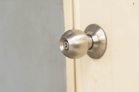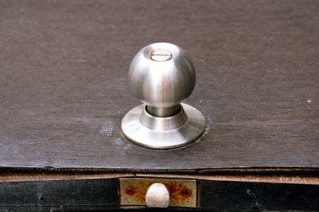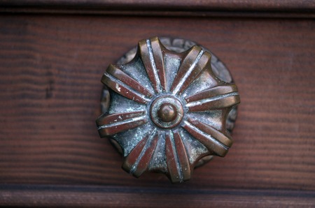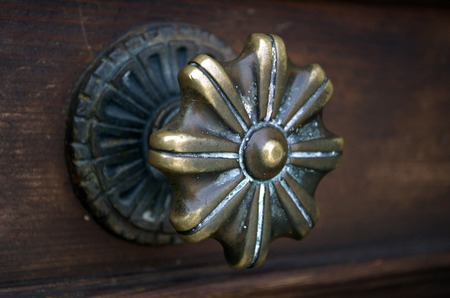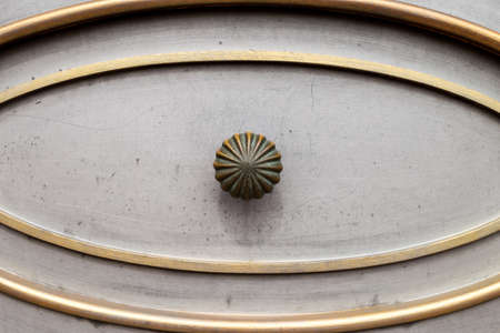 Closeup on a round door handle with decorative elements, door decoration, vintage