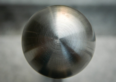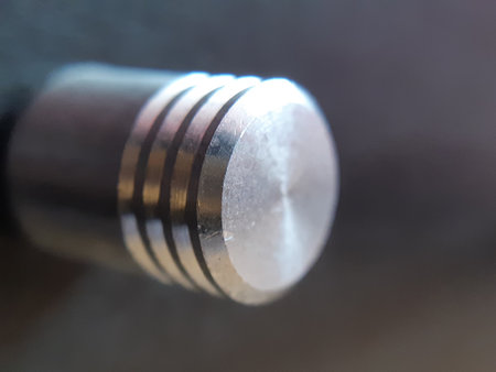 Close-up view of a circular metallic surface showcasing a smooth and polished texture. The light reflects subtly, emphasizing the metallic sheen and fine details of the surface.