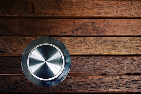 Metal volume control knob on a foreground of the home stereo mini music system close-up at selective focus