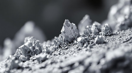 Raw Rare Earth Mineral. Close-up of raw, unprocessed rare earth mineral crystals, showcasing their texture and crystalline structure.