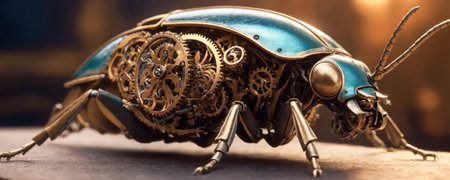 An intricate bug figurine is made to look like a mechanical instrument gears