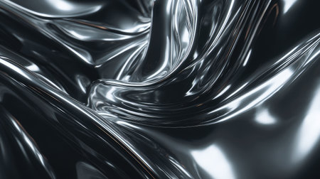 This image features a shiny metallic fabric texture showcasing smooth waves and luminous reflections in a striking monochrome palette, perfect for design projects.