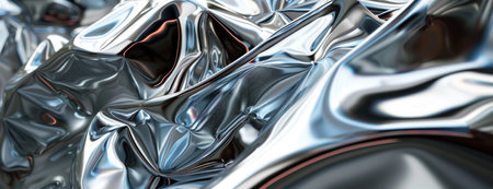 Shiny metallic silver banner reflecting light creating an abstract design, ideal for backgrounds, websites, or advertising