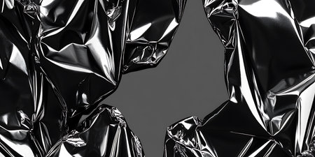 Reflective aluminum foil texture capturing light and shadow in intricate patterns