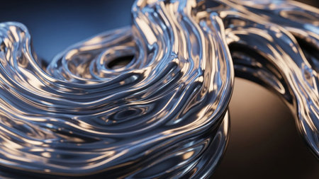 This image captures the intricate beauty of metallic ribbons with soft curves, reflecting light in a harmonious blend of elegance and modernity. Perfect for artistic projects.