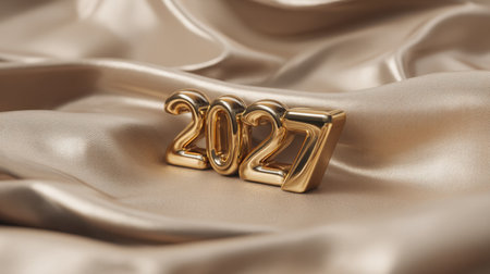 Capture the essence of celebration with this elegant golden 2027 numeral resting on smooth satin fabric, perfect for festive events and inspiring themes.