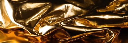 A captivating close-up of shimmering gold foil texture featuring intricate wrinkles and creases, perfect for enhancing creative backgrounds and artistic projects.
