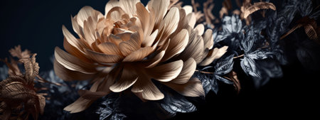 A close-up banner featuring the intricate details of a single dried flower, with deep shadows and high contrast that add drama and intensity. Generative AI