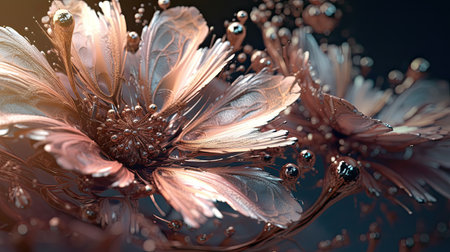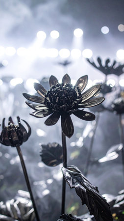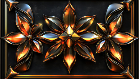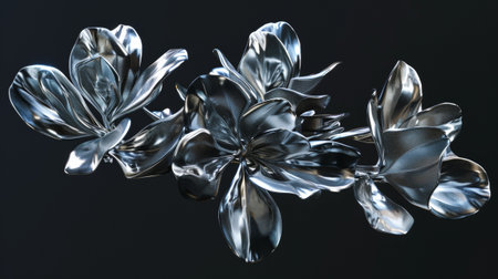 Abstract Metallic Flowers on Dark Background