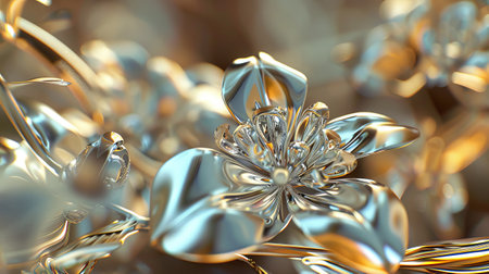 Abstract Metallic Flowers with Reflective Surfaces and Soft Bokeh Background in Warm Tones