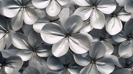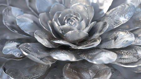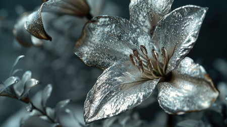 Beautiful silver metallic textured flowers, close up intricate details, elegant background