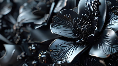 AI Generated. Dark Metal Floral Design Background Texture