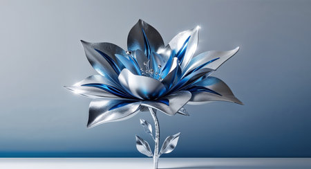 AI Generated. Abstract Silver And Blue Metallic Flower
