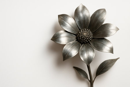 Metallic flower with leaves on a light background Space for text