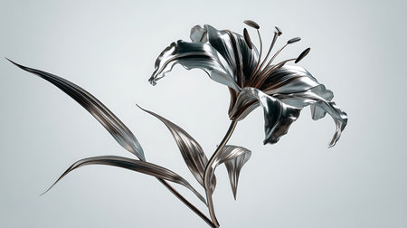 Silver lily flower isolated on white background. 3d render illustration