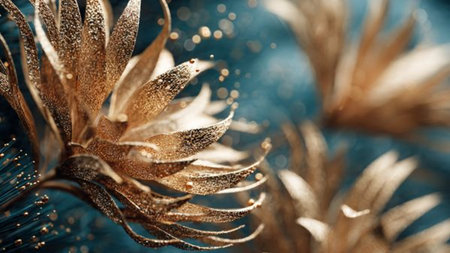 Luxurious gold foil flowers with shimmering details on a textured backdrop