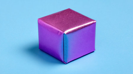 A vibrant purple gift box with a shiny finish sits against a blue backdrop, ideal for representing celebrations, surprises, and festive moments.