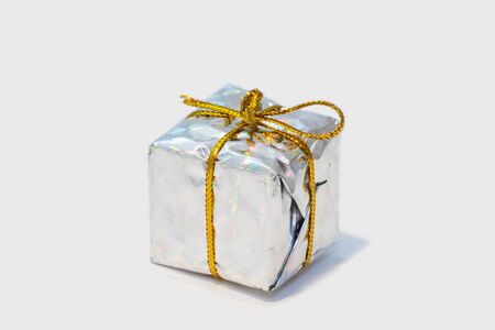 Silver gift box with bow isolated on white