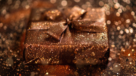 Copper and bronze glitter background with warm metallic sparkles, creating a rustic yet chic gift wrap.