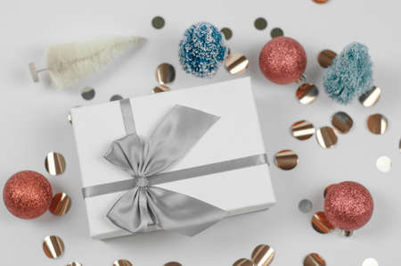 Beautiful Christmas gifts on a silver background