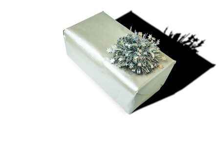 Silver christmas present, isolated on black.