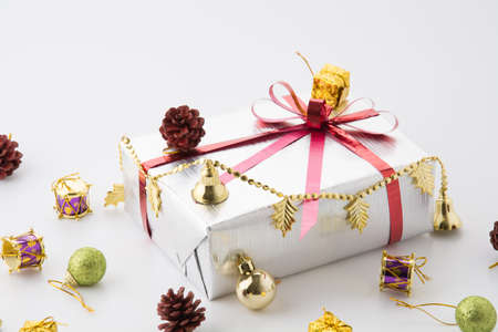 Christmas decorations, cute boxs Gift on white background with copy space to send the good felling