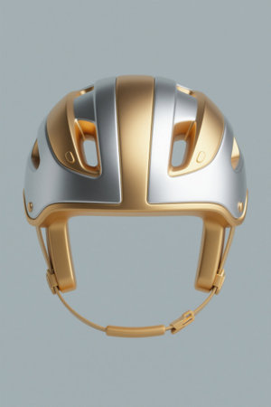 Close-up of gold and silver sports helmet