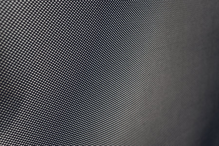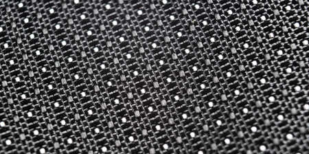 The background and texture of the fabric. Speaker cover, corduroy, polypropylene background. Close-up of black speaker surface texture. Woven mesh surface. metal grille, Speaker grille.