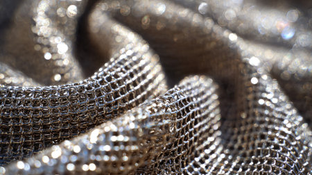 The gleaming surface of the mesh reflecting light and creating a mesmerizing gridlike pattern