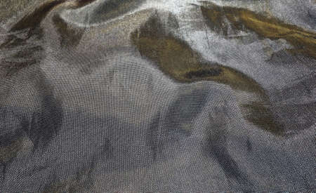 Synthetic polyester fabric with holes. Abstract background. A wave-folded piece of fabric in gray or silver color. Neatly hemmed fabric
