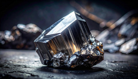 Pyrite is a brilliant mineral known for its golden hue and characteristic crystalline shapes, close-up.