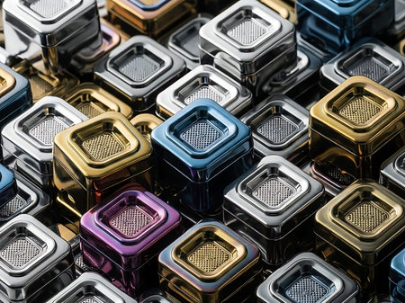 abstract background features a sleek metallic texture, perfect for adding a touch of luxury to any high-tech website design. The metallic sheen and reflective surface create an eye-catching