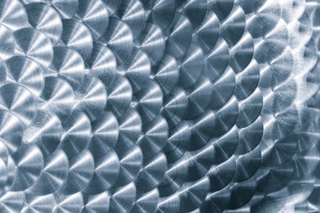 Diamond-patterned aluminum metal surface in a close-up shot, showcasing the texture and shine of the material.