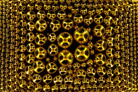 Background from golden metallic sequins. Texture of sequins on a city showcase