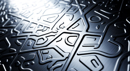A creative digital illustration depicting Commercial digital art of an abstract background with silver and gray metallic textures, reflective lighting, sleek and modern mood, industrial design style. This AI-generated artwork features unique visual elements suitable for various commercial and editorial applications. AI-generated illustration.