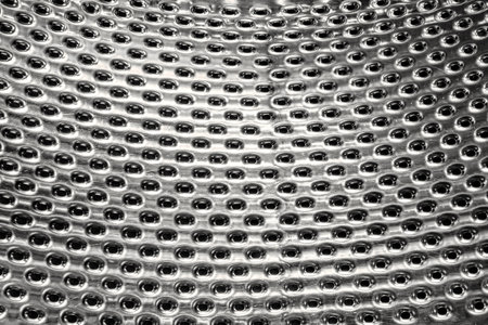 Background or texture from a gray and monophonic metal surface with symmetric and round openings.