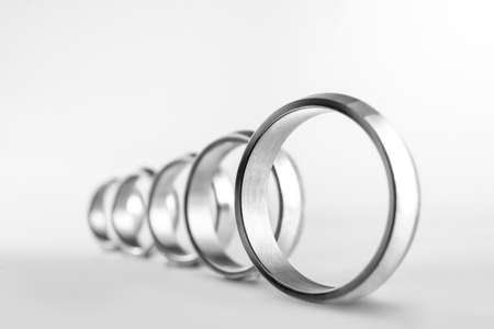 Silver men rings in line close up