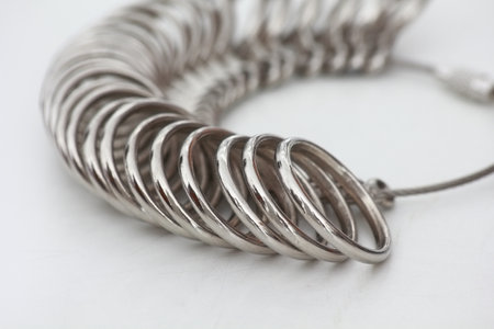 Ring sizer on a white background. Shallow depth of field.