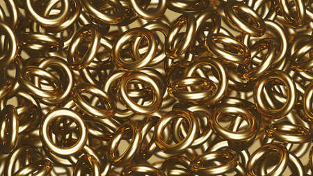 Shiny gold rings shapes. luxury background. 3d rendering