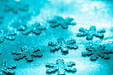 glittering snowflakes on blue background Christmas decoration