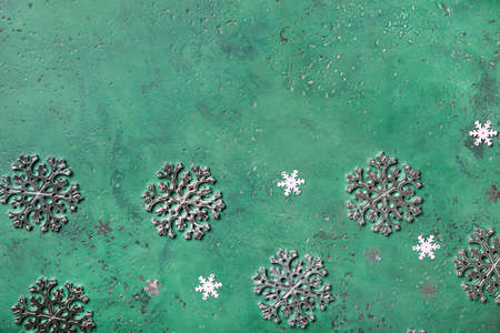 Beautiful snowflakes on green background