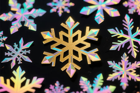 colorful snowflakes on a black background close-up macro