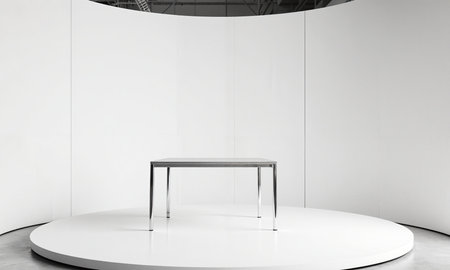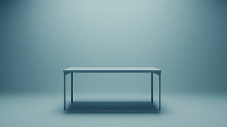 A minimalistic empty table set against a soft blue background, showcasing clean lines and subtle shadows, ideal for modern design concepts, interior decor projects, or creative presentations.