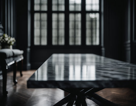 Abstract Elegance of a Black Table Edge in Minimalist Setting. Generative ai. High quality illustration