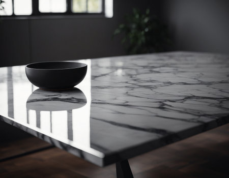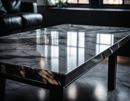reflection of empty room on shiny tabletop, with blurred reflections, created with generative ai