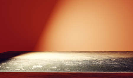Black marble table and modern lamp on gray wall background. 3D Rendering