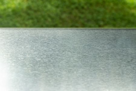 Empty metal table in the warehouse. Selective focus. Industrial background