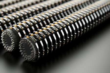 Shiny steel machinery in a row, on black background generated by artificial intelligence
