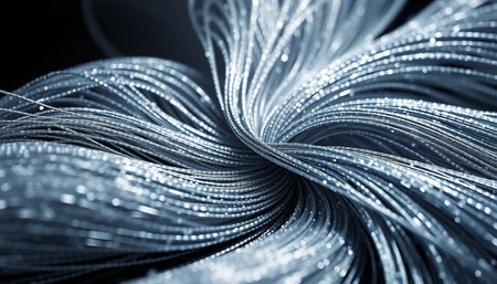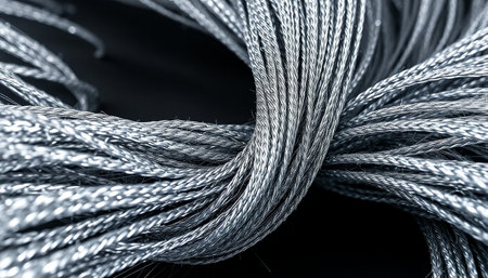 Close up shot of a bunch of silver wire rope on black background