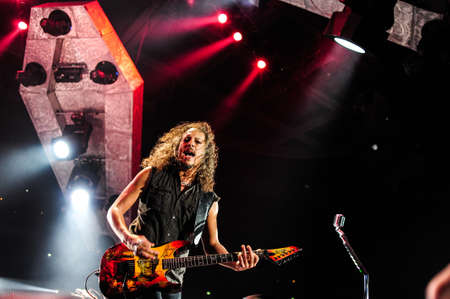 PRAGUE, CZECH REPUBLIC - MAY 7, 2012: Singer and guitarist James Hetfield of Metallica During a performance in Prague, Czech Republic, May 7, 2012.